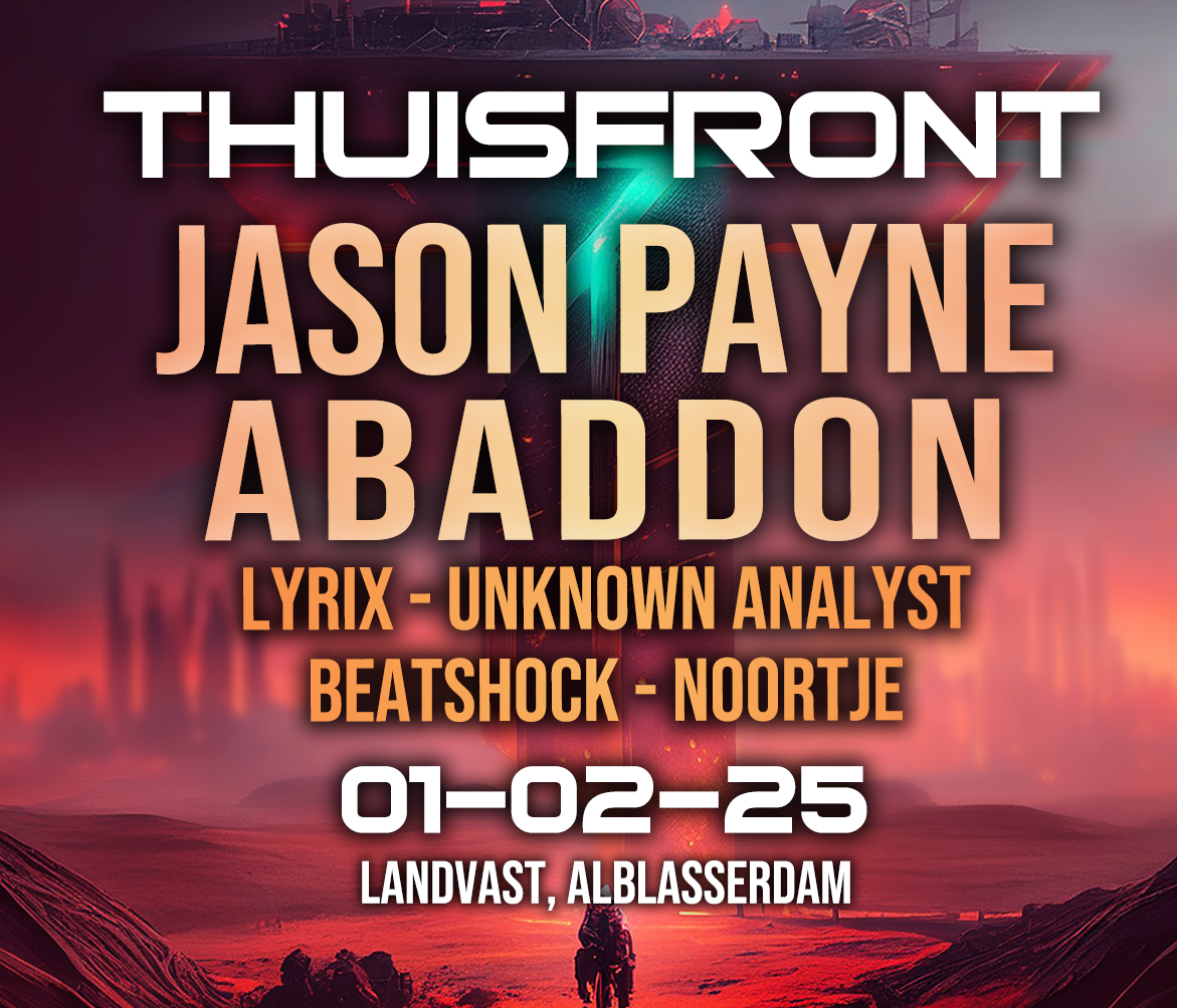 Tickets zijn nu beschikbaar THUISFRONT Koop tickets! Upcoming Events Koop tickets THUISFRONTTHUISFRONT presenteert het hardste feest in Ablasserdam en omstreken!Timetable:21:00 - 21:45 Noortje 21:45 - 22:45 Lyrix & Unknown analyst 22:45 - 00:15 Jason Payne 00:15 - 01:00 Beatshock 01:00 - 02:00 Abaddon18+